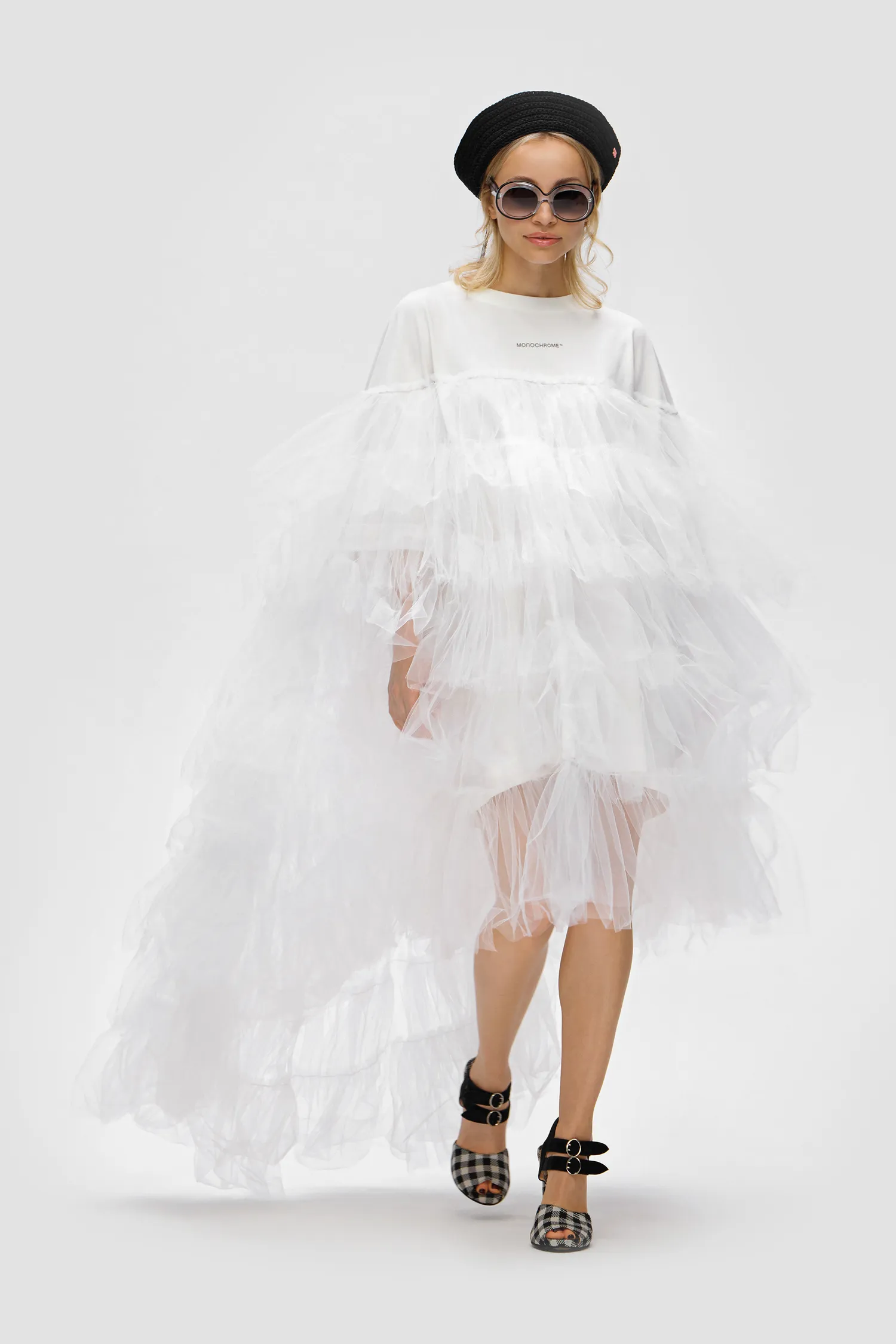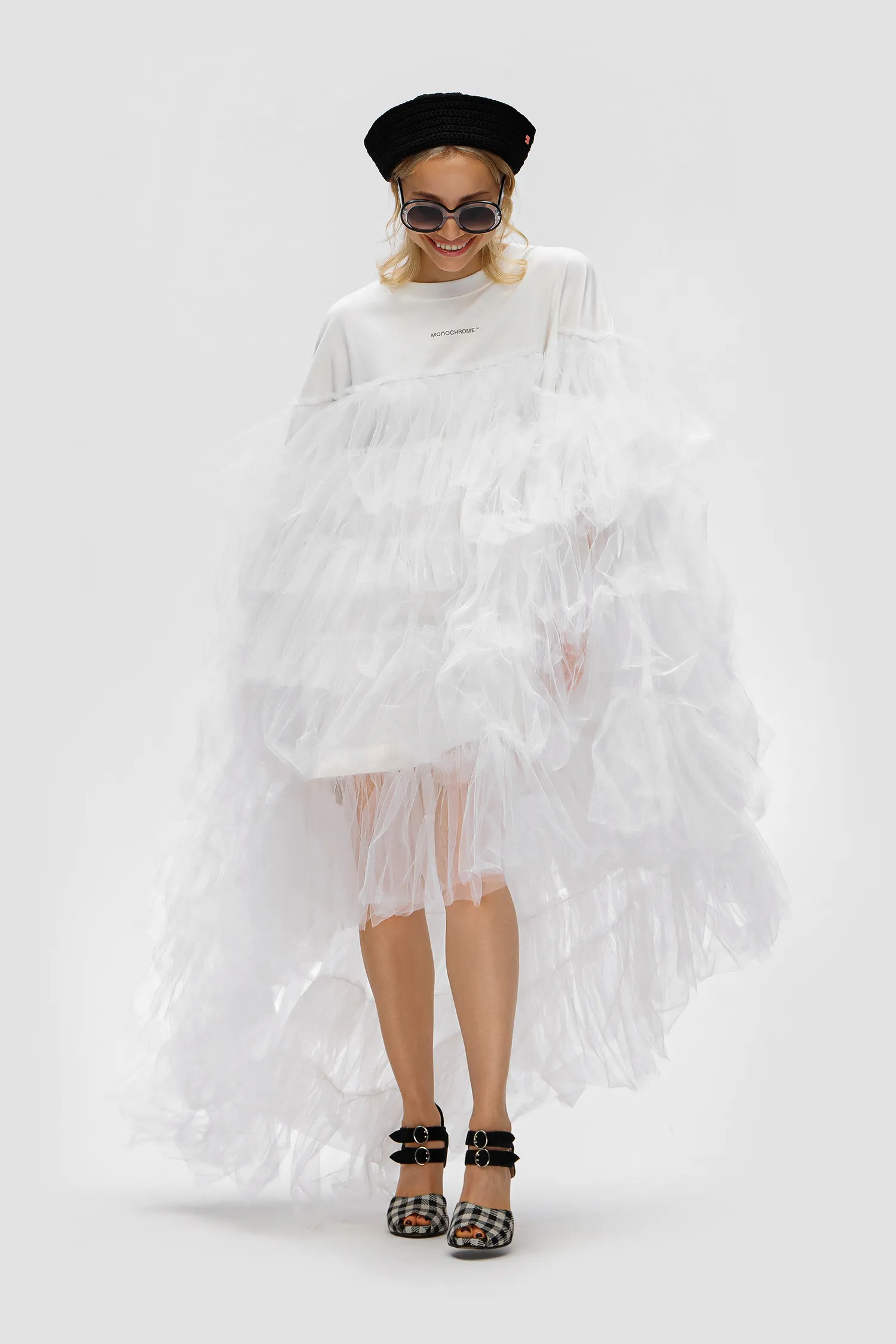 Рекомендуется как ручная, так и машинная стирка с программой деликатная стирка и с температурой стирки до 30°. Не замачивать. При стирке применять щадящие моющие средства для цветных тканей. Отжим на оборотах до 400. Горизонтальная сушка изделия в разложенном виде. Гладить изделия только с изнаночной стороны, избегая контакта утюга с принтом, юбку из фатина утюжить паром. Химчистка разрешена на усмотрение технолога химчистки.