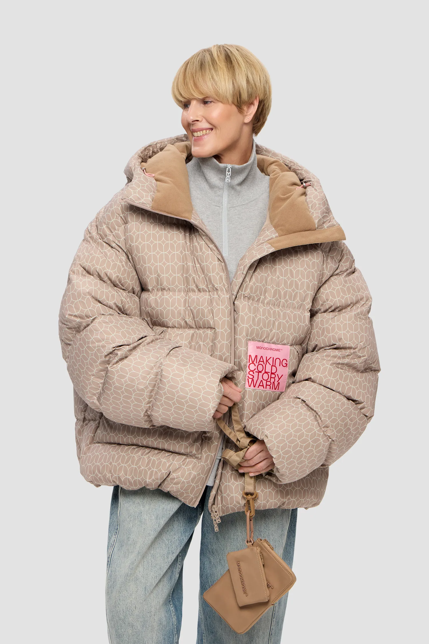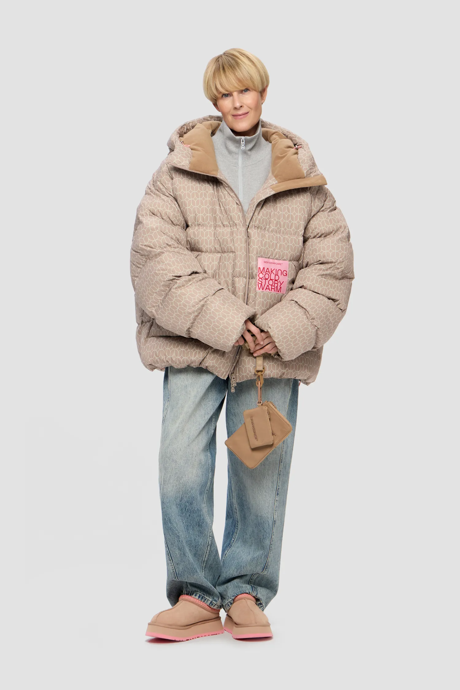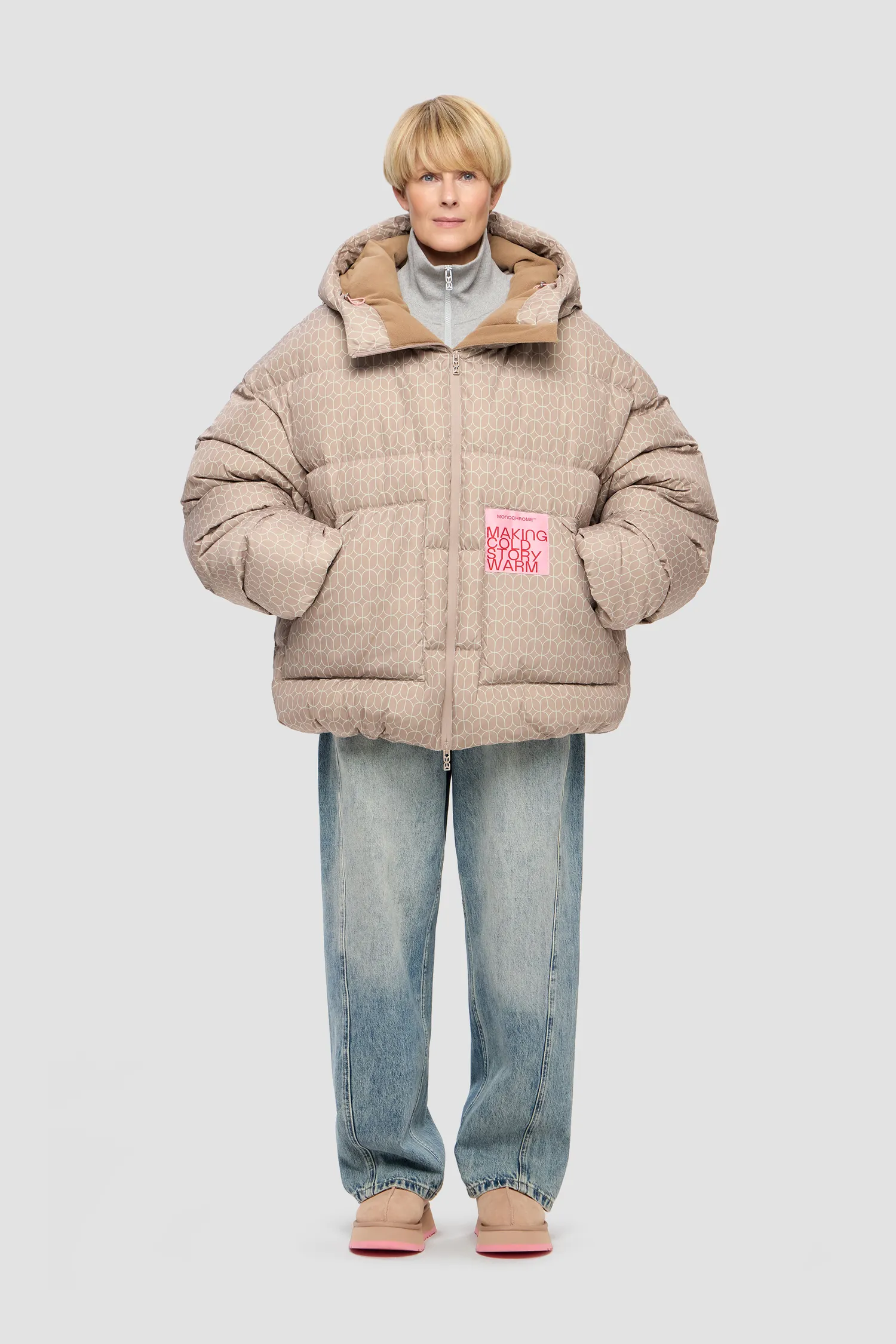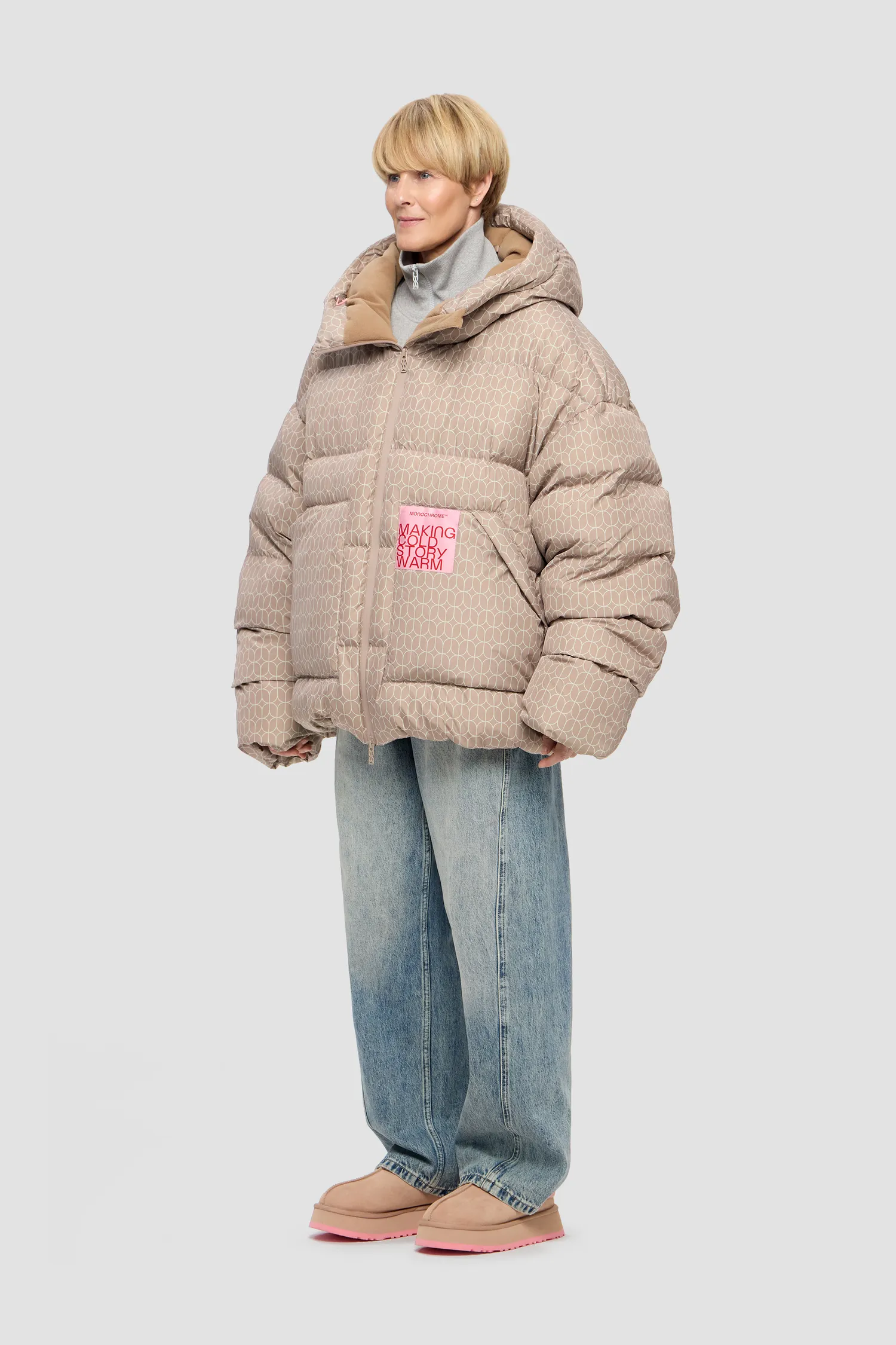 Ткань имеет водоотталкивающую пропитку. Стирать в домашних условиях не рекомендуется, неправильный уход за изделием может привести к сбиванию пуха в комки, могут появиться разводы от неправильно подобранного порошка, а также может появиться неприятный запах от нарушенного режима стирки и сушки. Барабанная сушка запрещена. Гладить запрещено. В случае промокания под снегом или дождем повесить на вешалку и дать высохнуть естественным образом. Химчистка на усмотрение технолога химчистки.