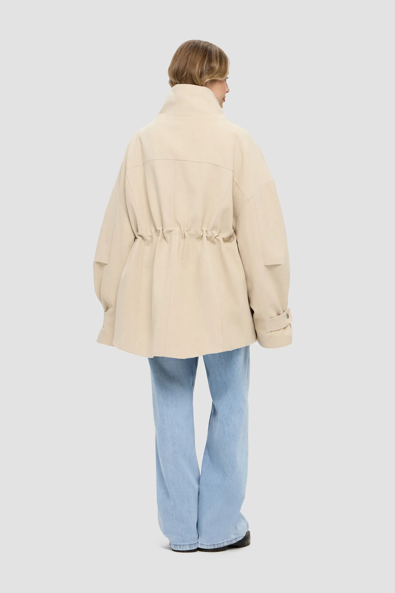 Ткань имеет водоотталкивающую пропитку. Не рекомендуется стирать в домашних условиях. Неправильный уход за изделием: могут появиться разводы от неправильно подобранного порошка, может появиться неприятный запах от нарушенного режима стирки и сушки. Рекомендуем использовать химчистку, где технолог подберет подходящий уход. Барабанная сушка запрещена. Если вещь намокла, нужно повесить на вешалку и дать высохнуть естественным путем. Гладить запрещено. Отбеливать запрещено.
