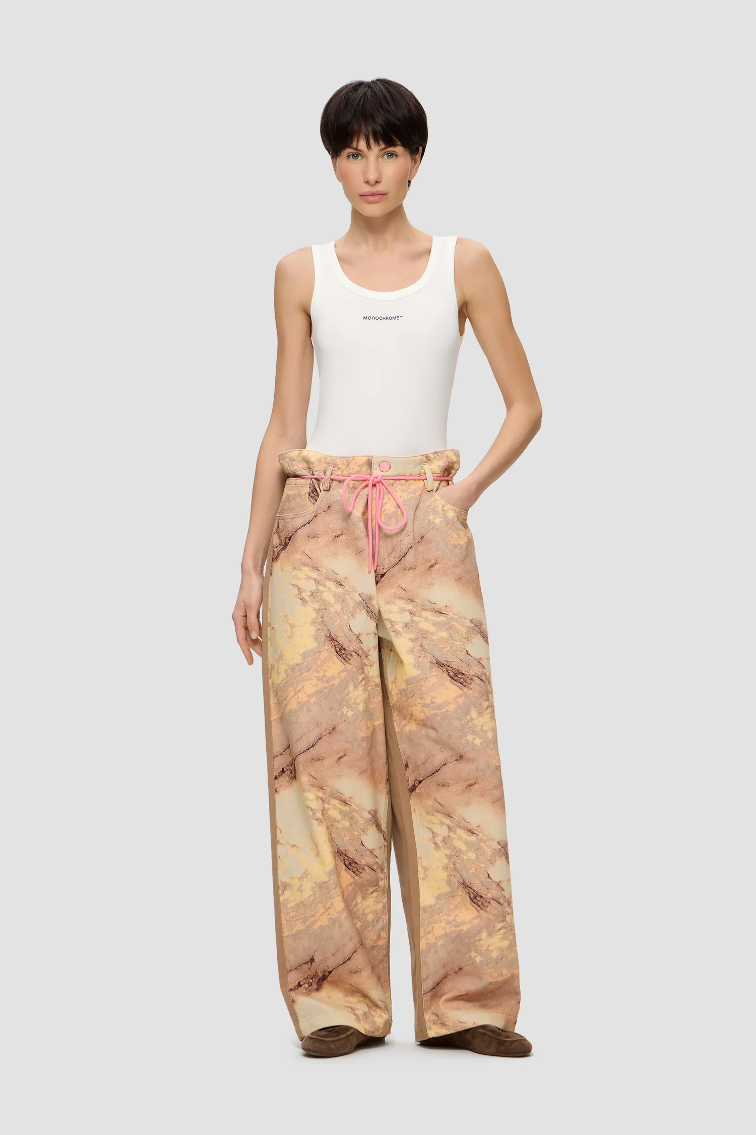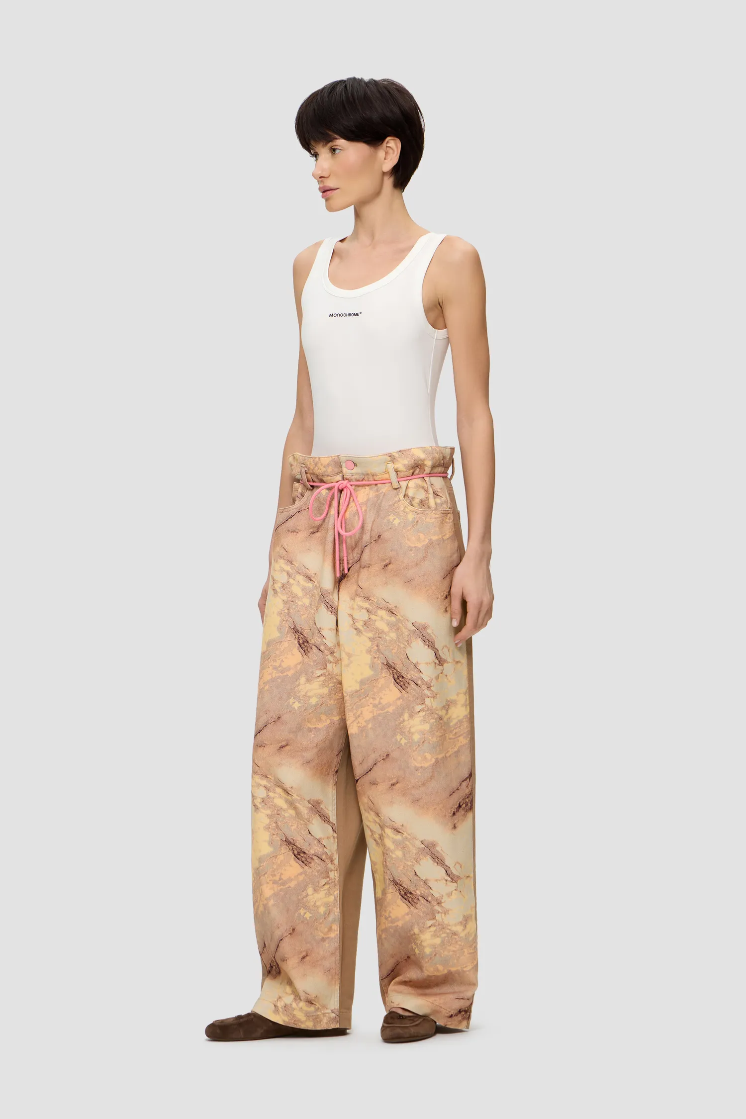 Разрешена как ручная, так машинная стирка при максимальной температуре воды 30, с максимальным отжимом 400°. Не замачивать. При стирке применять щадящие моющие средства для цветных тканей. Не применять хлоросодержащие средства и не смешивать с контрастным бельем. Барабанная сушка запрещена, может произойти сильная усадка изделия и деформация. Гладить изделие с изнаночной стороны во избежание контакта утюга с принтом при максимальной температуре утюга 110°. Химчистка запрещена.